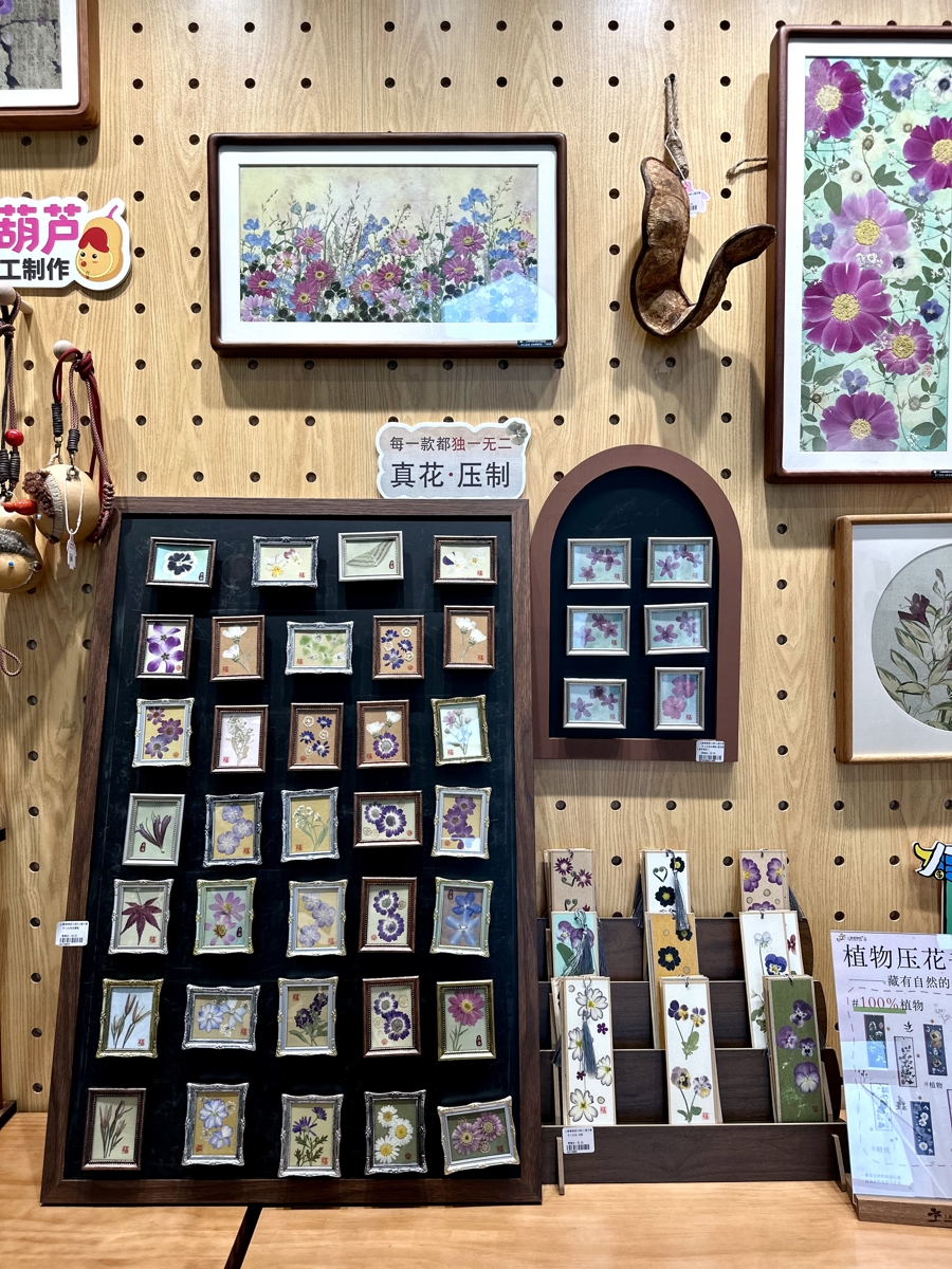 此外,以蒲公英绒毛、猪笼草捕虫袋、桂花花瓣等植物标本封存制作的亚克力雪柜贴和摆件也蛊卦了许多顾主,大众纷纷解囊,将当然气味带回家。