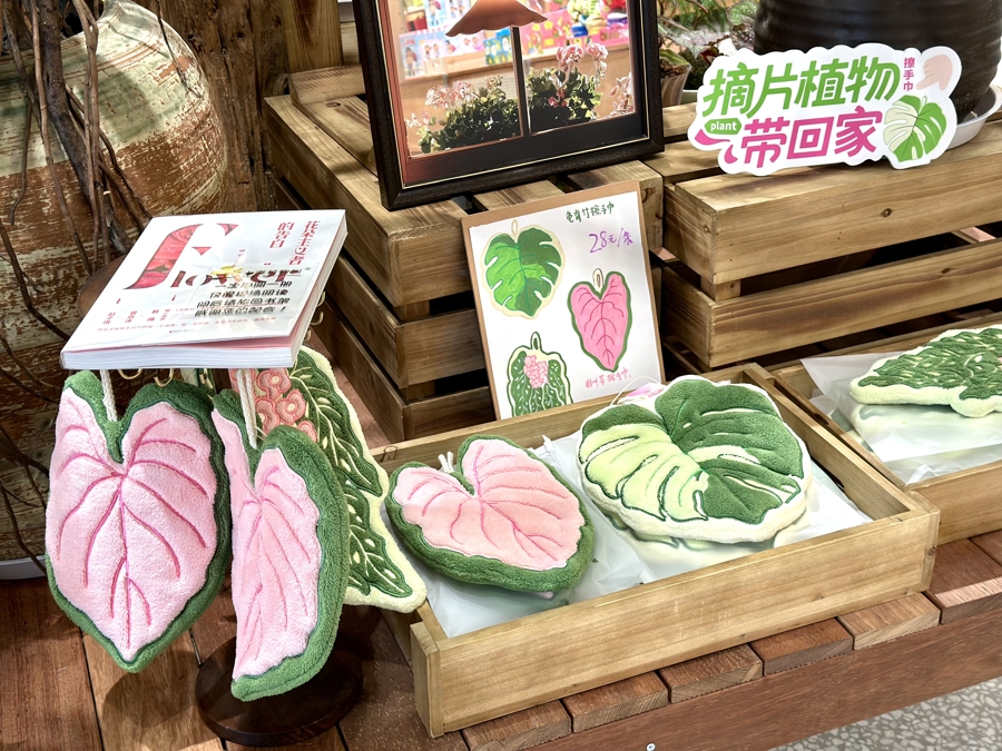 店里值得挖掘的工致念念还有许多,无论是长得像彩叶芋的擦手巾,已经榼藤果作念的小包挂,亦或是绿植和园艺器具,齐很相宜爱植物的东谈主缓缓逛、细细品。走累了,在店外新辟的外摆区喝一杯带有上植LOGO的咖啡,眼前即是秀好意思的异卉奇花,简直称心无比。