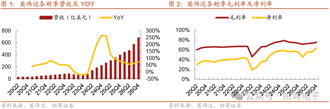 英伟达发布FY26Q4季报,本季营收681亿好意思元,同比+73%/环比+20%,创历史新高;non-GAAP毛利率为75.2%,同比+1.7pcts/环比+1.6pcts。详细财报及交流会议信息,归来要点如下: