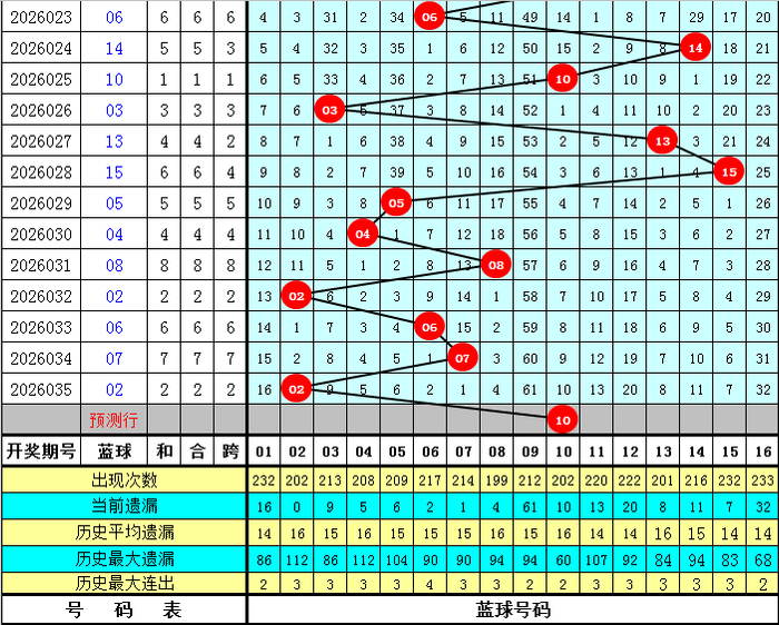 蓝球号码分析:上期蓝球为02,开出2路号码,蓝球最近10期012路比为3:3:4,最近30期012路比为7:15:8,最近100期012路比为27:44:29,本期蓝球看好1路号码,四码蓝球参考01、07、10、13。