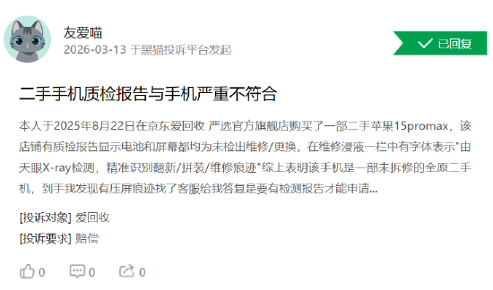 跟着“3·15国外奢侈者权利日”邻近,奢侈维权 【下载黑猫投诉客户端】问题再次成为眷注焦点。据新浪黑猫投诉平台最新数据,近日在黑猫投诉平台上,知名电子家具回收及二手交游平台“爱回收”因质检身手问题频遭奢侈者投诉。投诉骨子围聚指向其二手商品性检确认“名不副实”,以及在以旧换新业务中,存在以细微谬误为由坏心压价的情况,激勉奢侈者对平台质检圭臬与信誉的平凡质疑。