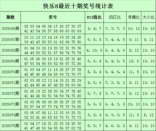 福彩欢叫8第2026075期开奖转头:01 04 17 18 21 22 23 24 25 30 41 47 48 50 54 55 56 57 62 78,其中奖号012路比为8:5:7,四区比为4:6:8:2,奇偶比为9:11,大小比为10:10。