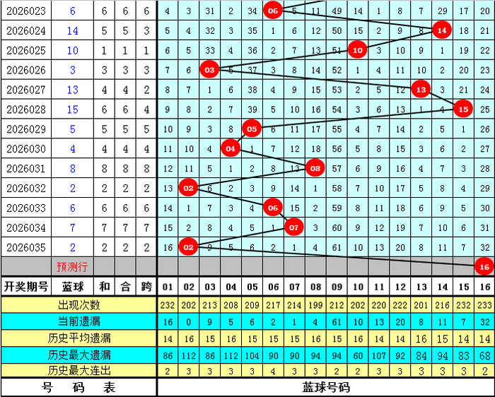 蓝球分析:上期蓝球为2路号码02,下跌5个点位,最近50期开奖中,蓝球号码012路落号比为12:23:15,前10期蓝球012路落号比为3:3:4,本期蓝球平和1路号码,独蓝参考16。