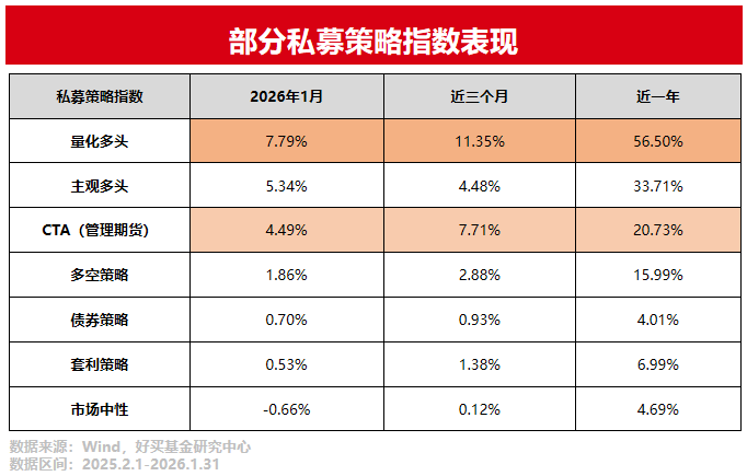这种布景下,本年CTA策略施展也较为隆起。2026年1月,佳成网配资CTA在各种私募策略中涨幅靠前。