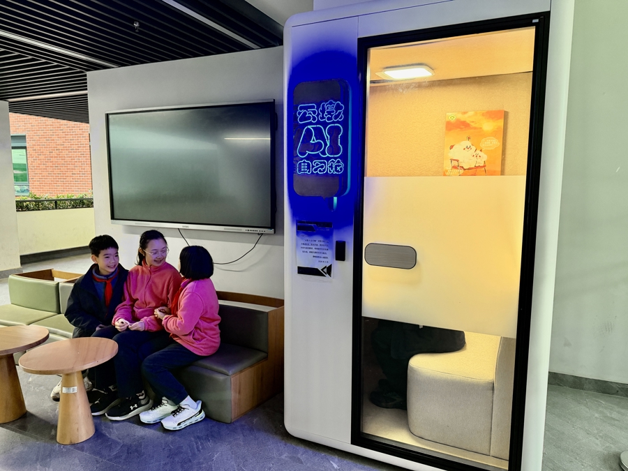 最近,上海市静安区教学学院从属学校(简称“静教院附校”)的校园里多了两个“智能小伙伴”——AI云墩自习舱。天然只是是试点,但全校两个AI云墩自习舱经常会出现“列队”等候的火热征象:同学们一个个撺拳拢袖,通过我方的专属账号插足自习舱和AI聊天、问答、作念游戏,甚而K歌。
