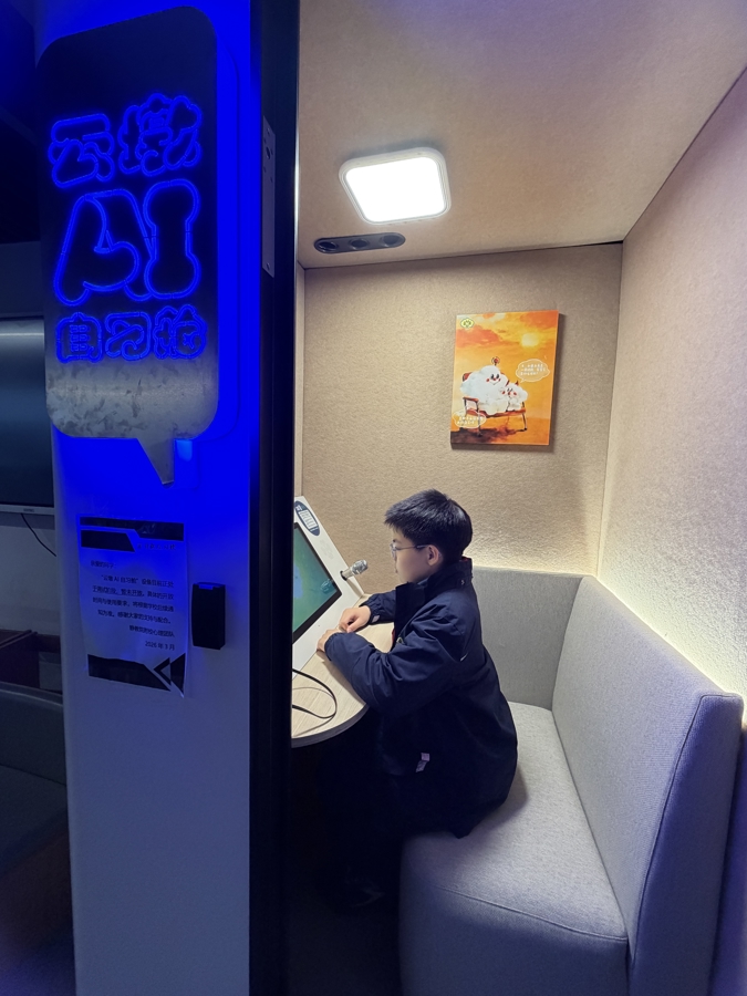 AI云墩自习舱里面。