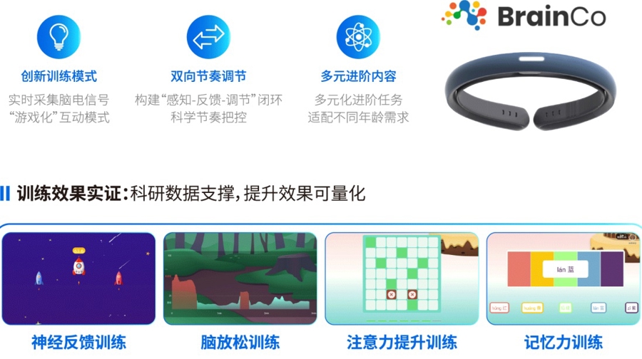 而“专注寰球”版本,则需要领导一个“脑机接口”的头环,通过监测脑电波来教师专注力。“戴上面环后,通过脑机接口能感受到学生的属眼力。”周超先容,比如,火箭升起的小游戏,属眼力越长入,火箭升起的高度就越高;属眼力漫步的话,火箭升起的高度数值便会下调。于同学说:“这些小游戏很故真义,通过教师能匡助我和谐气象,擢升听课或作念功课的恶果。”