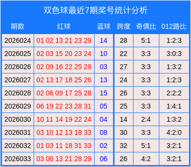 双色球近7期奖号数据统计图表